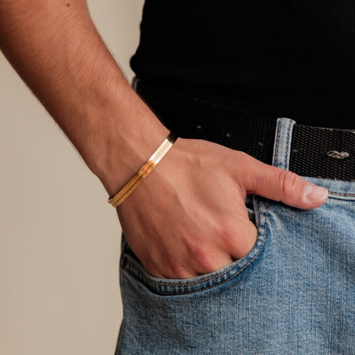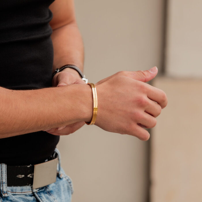 Bransoletka typu CUFF, wyróżniająca się eleganckim i nowoczesnym designem. Jej uniwersalny rozmiar pozwala na łatwe dopasowanie do nadgarstka poprzez delikatne doginanie lub odginanie. Charakterystyczne rozszerzenie na końcach dodaje jej oryginalności i sprawia, że staje się wyjątkowym dodatkiem do każdej stylizacji. Idealna dla osób ceniących styl i wygodę w jednym.