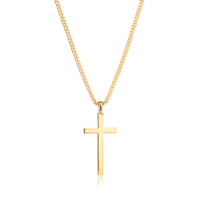 Elegancki naszyjnik o klasycznym, minimalistycznym designie. Składa się z 2mm stalowego łańcuszka i zawieszki w kształcie płaskiego krzyża. Dostępny w wersji srebrnej lub złotej, doskonale uzupełni zarówno oficjalne stroje, jak i codzienne stylizacje, dodając im szyku.