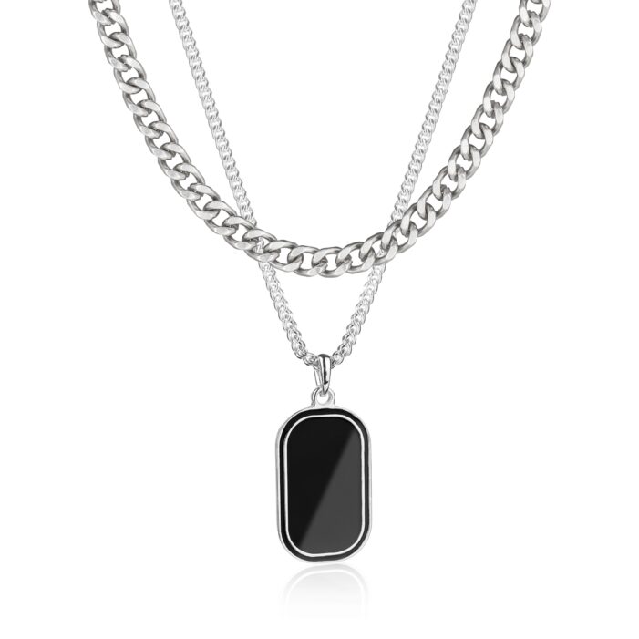 Strona główna Biżuteria męska Naszyjniki męskie Zestaw Naszyjnik Cuban & Nieśmiertelnik Onyx (srebrny)
